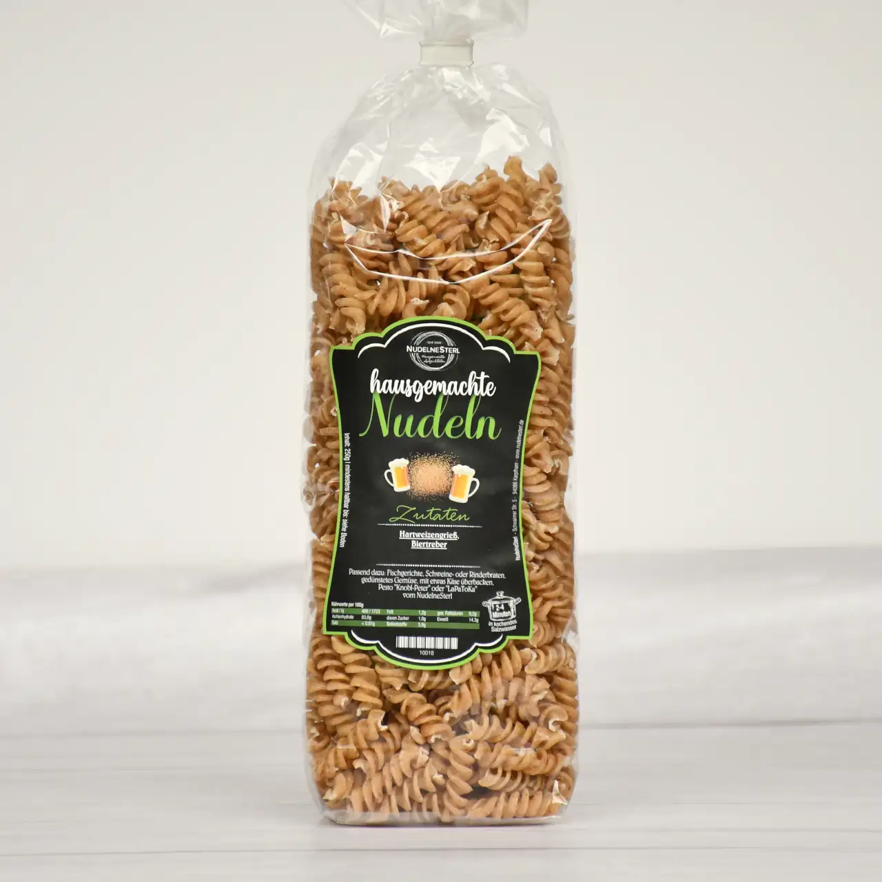 - Zutaten: Hartweizengrieß, Biertreber (enthält Gerste)