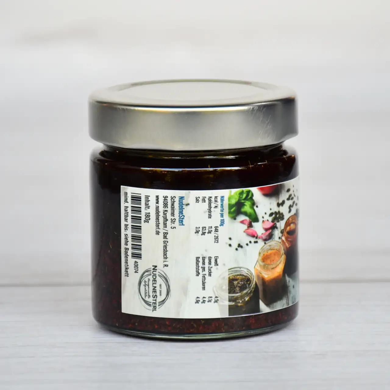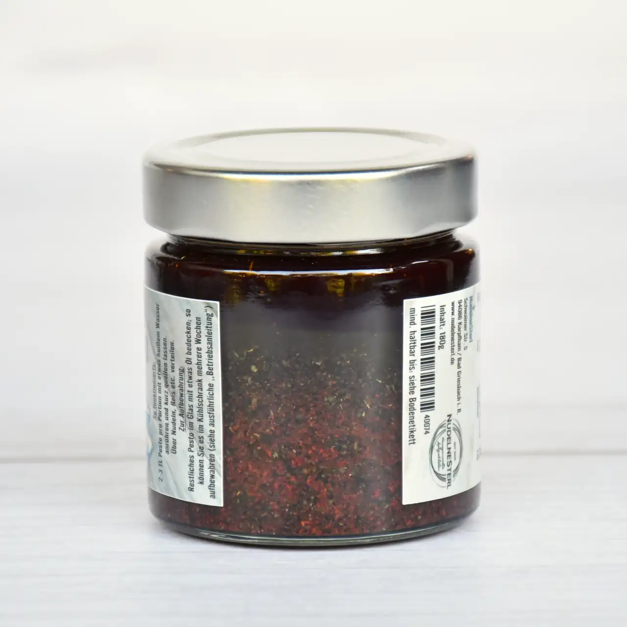 Bitte säubere immer nach der Entnahme von Pesto den Glasrand und Deckel mit etwas Küchenkrepp.